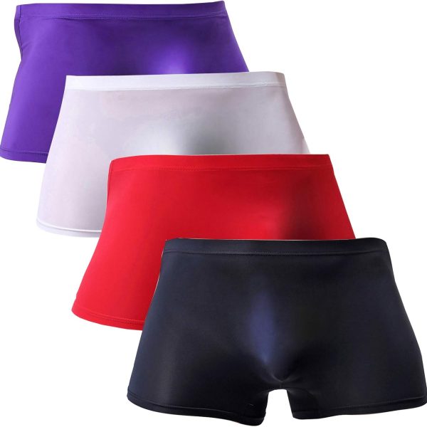 Men’s Boxer Briefs, Sexy Silky Breathable Ice Silk Mens Trunks Underwear, Underwear for Men 4 Pack