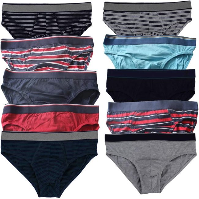 Men’s Cotton Underwear Hip Briefs 5-Pack Classic Stretch Bulge Pouch Bikini Undies with Assorted Solid Color Stripe