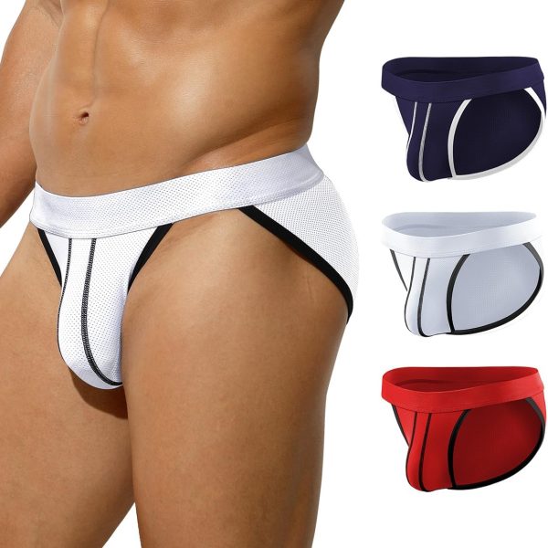 Mens Briefs Breathable Sexy Mesh Briefs Underwear Low Rise Underpants Wicking-Moisture Underwear 3 Pack